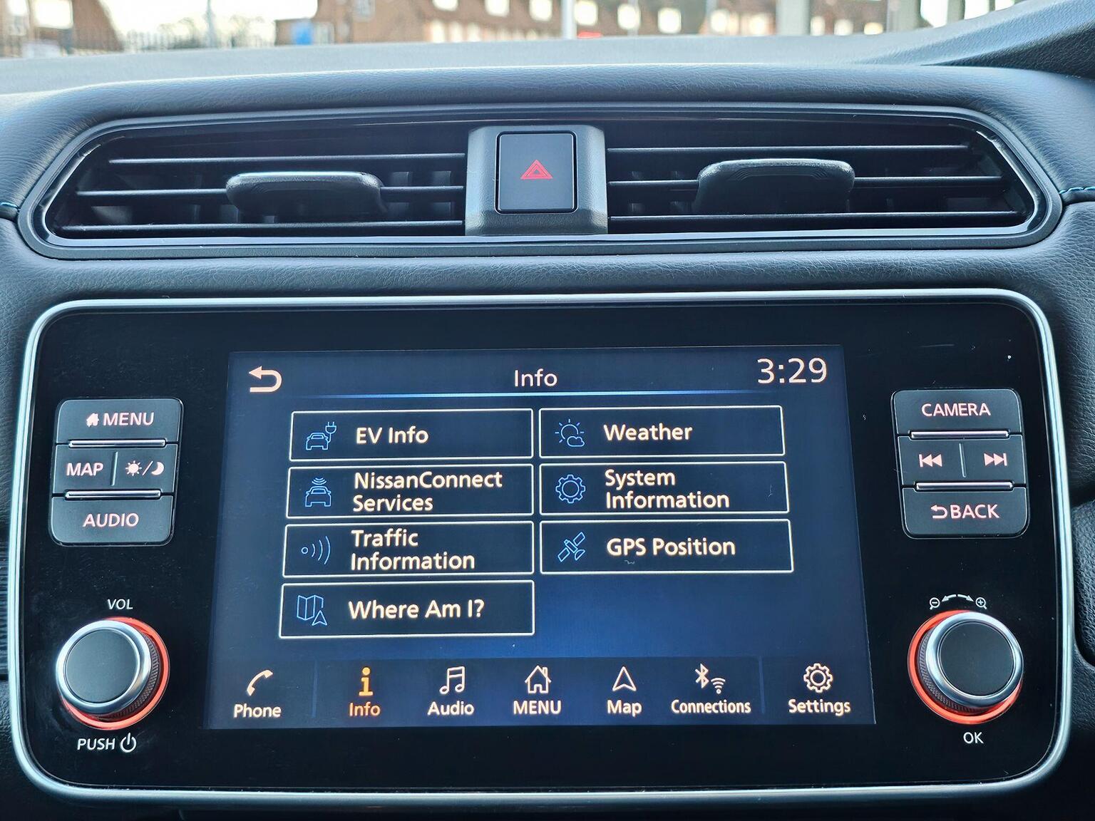 Only 2 Ownes From Brand New | All Nisan Service History - 4 Service Records | Battery State of Health 12/12 (Excellent) | Apple CarPlay & Android Auto | Wirelss Phone Charging | Adaptive Cruise Control with Limiter | Part Leather Seats | Front & Rear Heated Seats | Heated Steering Wheel | Auto Headlights | Auto High Beam Assist | Auto Wipers | Auto Folding Side Mirrors | Auto Emergency Braking | Blind Spot Detection | Front & Rear Parking Sensors | Lane Departure Warning | Reverse Parking Camera + Birds eye view 360 Degree Camera | Satellite Navigation | E-Pedal Option | 3kW/6kW/50kW Charging Options | Keyless Entry & Start | Finance Available at Competitive Rates | Last Serivce Carried out at 33,742 Miles on o8/09/2025 | MOT Valid Until 17/09/2026 by Nissan | 3 Months Warranty with an Optional Upgrade to 1, 2 & 3 Years | Part Exchange Welcome | Cruise Control & Speed Limiter | Climate Control with Air Conditioning | AUX/USB/Bluetooth Media Connectivity | Hands-Free Phone Call Connectivity | Electric Windows | Multi-Function Steering Wheel Controls | ISO Fix | Child Lock. An Excellent Example of a Well Maintained Car.